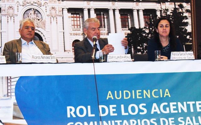 En la audiencia, denominada “Rol de los Agentes Comunitarios de Salud en la Atención de la Salud Primaria”, participaron también la presidenta de la Asociación Red Innova, Regina Moromizato Izu; y Salvador Herencia Hinojosa, secretario técnico del Grupo Impulsor inversión en la Infancia.