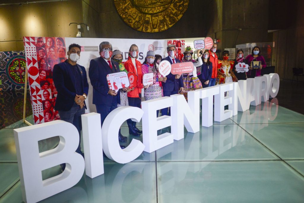 Bajo el lema “Unidos por el Bicentenario”, el ministro de Cultura, Alejandro Neyra, y la directora ejecutiva del Proyecto Bicentenario, Laura Martinez, presentaron una campaña que invoca a la unidad nacional e incluye un homenaje a la patria que se vivirá este 27 de julio, de manera simultánea, en la capital y todas las regiones del país para conmemorar los doscientos años de la declaración de nuestra independencia.