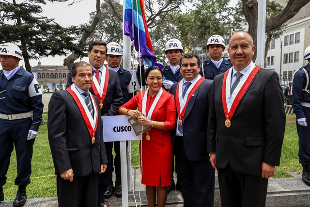 Terminada la Sesión Solemne en el hemiciclo principal del Congreso de la República, los parlamentarios se dirigieron hasta la Plaza Simón Bolívar, frente a la sede legislativa, donde con unción patriótica izaron el Pabellón Nacional y las banderas de sus respectivos departamentos o regiones. Luego de este acto, posarán para la foto oficial en la puerta del Parlamento.