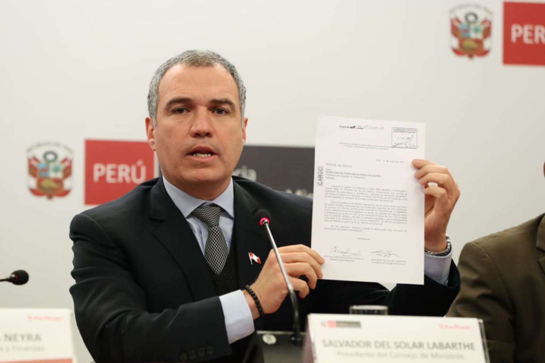 El presidente del Consejo de Ministros, Salvador del Solar, anunció que el Poder Ejecutivo presentó al Congreso de la República, el proyecto de reforma constitucional de adelanto de elecciones generales al 2020.