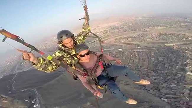 Te persignas por tercera vez consecutiva. “Da dos pasos”, dice Juan. Estás a 400 metros de la ciudad, al borde de la nada. Y saltas. Sientes la adrenalina a mil. Por un segundo gritas y luego…solo disfrutas. ¡Estás volando!