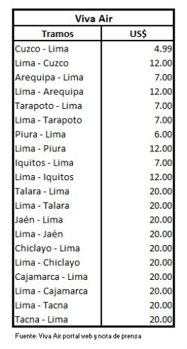 Y es que luego que Sky Perú ofreciera en la víspera pasajes a diversos destinos nacionales a precios competitivos ¡¡¡¡¡Viva Air también hizo lo propio!!!!