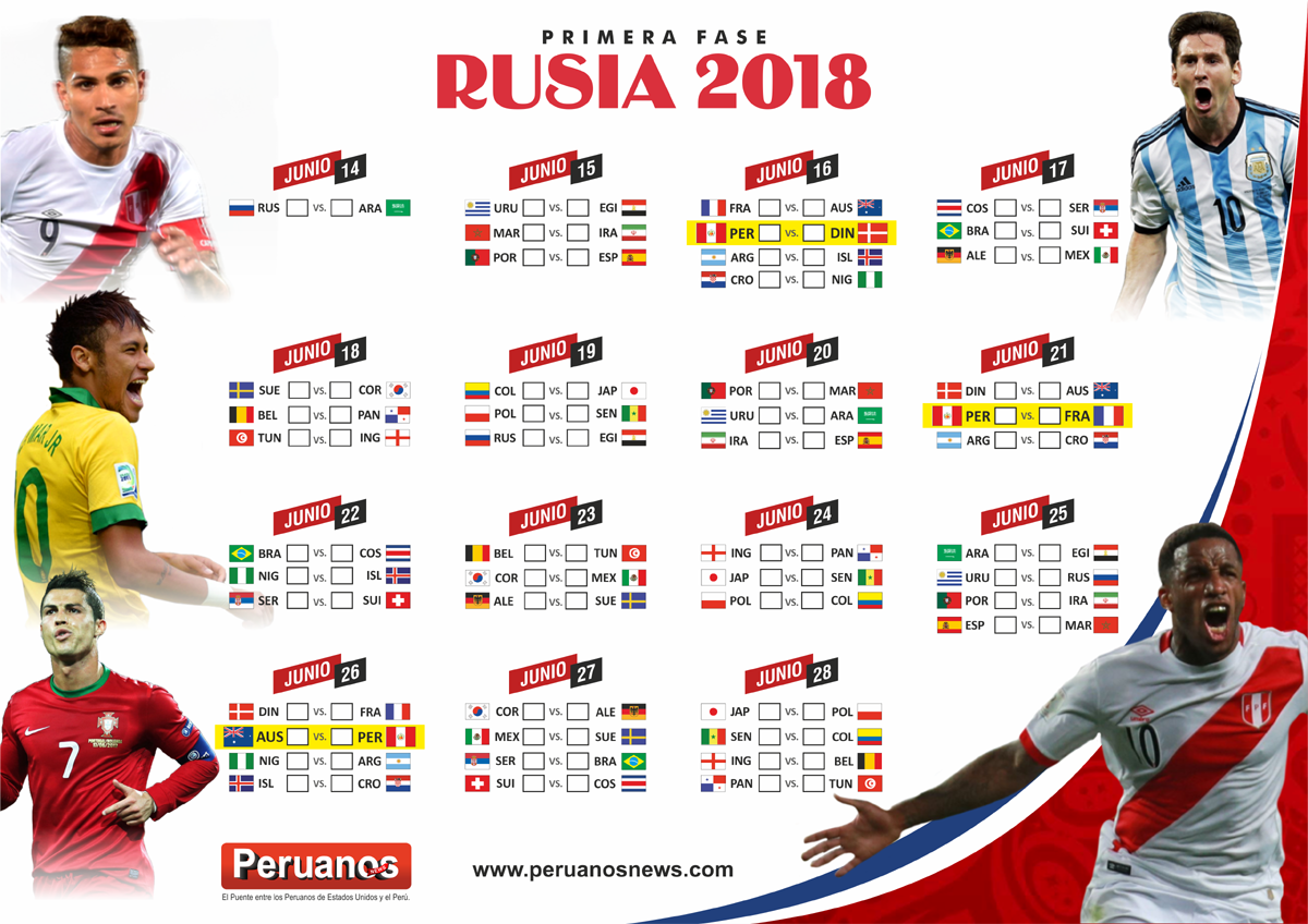 En esta nota podrás descargar el fixture del mundial y estar al tanto de los resultados de PERÚ y las selecciones participantes.