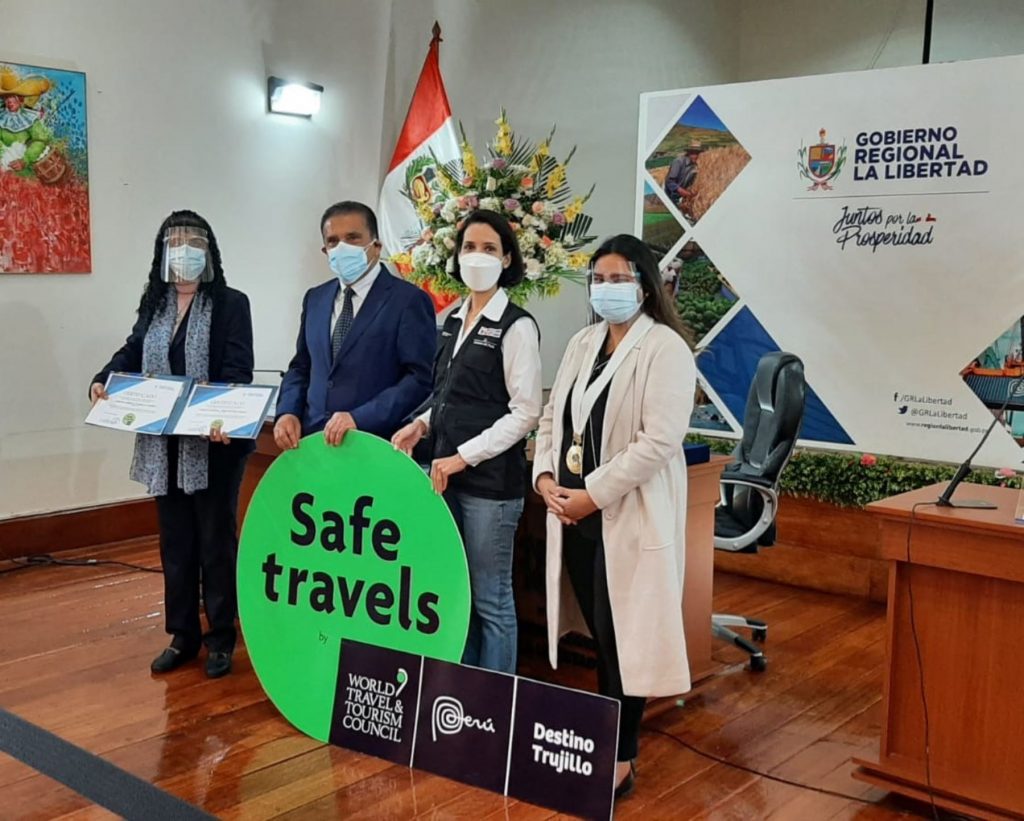 El último 13 de mayo, la viceministra de Turismo, Lyda García, entregó el Sello Safe Travels a 8 destinos en la región: Pacasmayo, Puerto Malabrigo, Magdalena de Cao, Puerto Morín, Cascas, Huanchaco, Moche y Trujillo.
