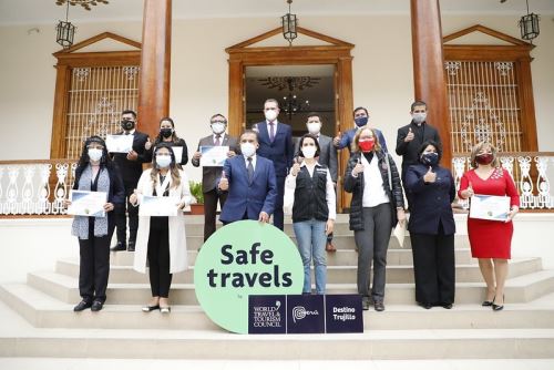 La ministra de Comercio Exterior y Turismo, Claudia Cornejo Mohme, entregó ayer el Sello Safe Travels a otros 15 destinos turísticos de la provincia de Trujillo, en la región La Libertad, que los reconoce como lugares turísticos seguros frente a la pandemia de la covid-19.