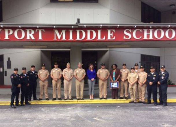 Integrantes del submarino peruano BAP “Angamos” que realiza operaciones de entrenamiento en el puerto de Mayport, Florida, fueron reconocidos por el apoyo que brindaron a la escuela estadounidense.