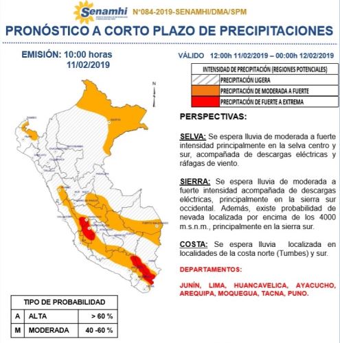 — SENAMHI (@Senamhiperu) 11 de febrero de 2019