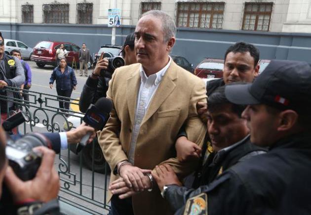 La exautoridad del Callao, Alex Kouri, es conducido esposado por la policía a la Carceleta Judicial. Su abogado defensor presentará recurso de nulidad. (Foto: ANDINA).