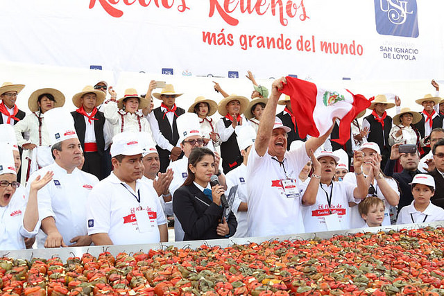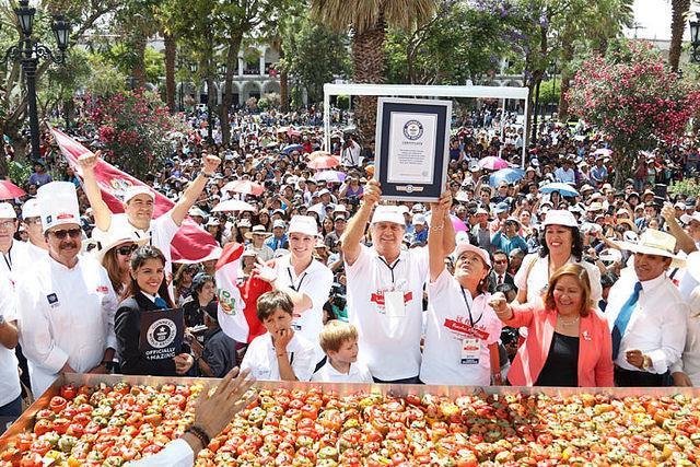 El nuevo Record Guinness del “Plato de Rocotos Rellenos Más Grande del Mundo”, se logró con un peso de 542.725 kilos y estuvo compuesto por 2,650 rocotos.