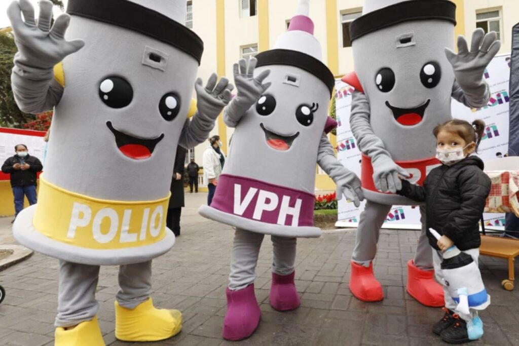Durante la actividad, y de manera simbólica, el conocido personaje “Vacunín” presentó a sus “hermanos” que representan las vacunas contra el VPH, polio, y sarampión, rubéola y paperas (SRP).