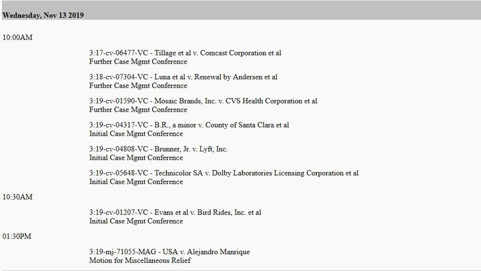 Según pudo verificar Perú21 con el calendario de audiencia de Chhabria, la diligencia se realizará a la 1:30 p.m.