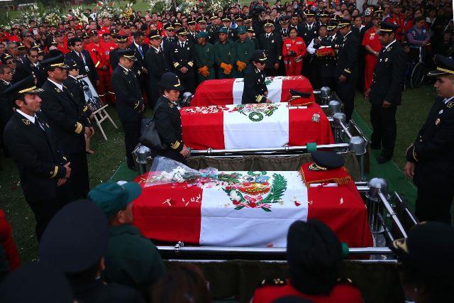 - Luego de este acto protocolar los ataúdes fueron llevados a las casas de cada uno de ellos, en el Rímac y en San Juan de Lurigancho, donde sus familiares y vecinos les dieron el último adiós con emotivos actos. El cortejo fúnebre partió entonces al cementerio Campo Fe de Huachipa.