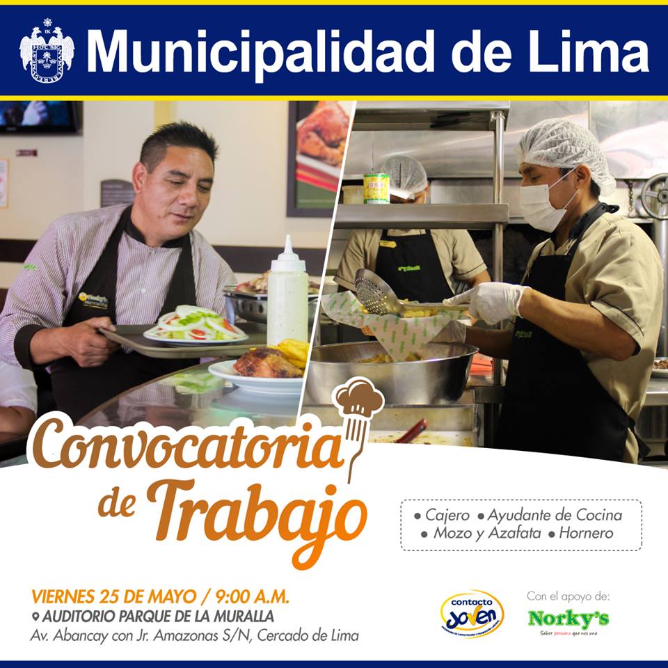 Norky´s está en busca de personal para trabajar en sus diferentes pollerías de Lima.