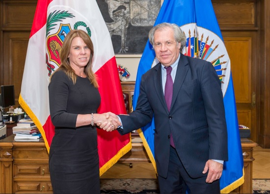 Ministra Cayetana Aljovín, se reúne con secretario general de la OEA, Luis Almagro.