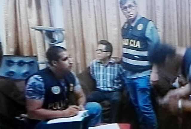 Momento es que es detenido por la policía Miguel Navarro Cruz (con lentes y camisa a cuadros), en su domicilio de la Urbanización Balconcillo, La Victoria. La Fiscalía señaló que esta noche habrán más capturas. (Foto: TV).