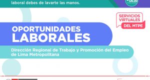 ¿Quieres postular? ✅ Envía tu CV a: bolsadetrabajo@trabajo.gob.pe colocando como asunto el código del puesto al que postulas. ✅ O saca una cita en la página de servicios virtuales del MTPE: http://serviciosvirtuales.trabajo.gob.pe/ seleccionando el servicio #BolsaDeTrabajo ⏰ Horario de atención:Lunes a viernes de 8:15 a. m a 4:30 p. m.Sábado de 8:30 a. m a 1:00 p. m. Publicado el 13 de Julio 2020