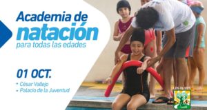 Desde el 01 de octubre asiste a las clases de natación La Municipalidad de los Olivos te invita a formar parte de la Academia de Natación con piscinas temperadas apto para todas las edades. Inicio: lunes 01 de octubre Informes e Inscripciones: al 6138282 Piscina Palacio de la Juventud – Anexo 1115 – 1512 Piscina Cesar Vallejo – Anexo 6108 ...
