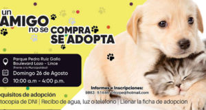 Plaza Pedro Ruiz Gallo (Boulevard Francisco Lazo) Domingo 26 de Agosto. 10:00 a.m. a 4:00 p.m. Ingreso Libre Organiza: Victor Lozano de S.O.S #AnimalistasEnAcción Se recolectará alimento para el #Albergue #LasPatitasDeSantaEulalia de la Sra. #RocioHuallpaMendoza (se necesita alimento balanceado antipulgas, lejía, pino, aserrín, clorox, periódicos, camas para perros, platitos de comida, etc.) Requisitos de Adopción: – Fotocopia de DNI – Recibo ...