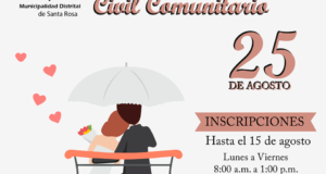 El próximo 25 de agosto, la Municipalidad de Santa Rosa esta organizando un “Matrimonio Civil Comunitario”. El municipio los invita a informarse e inscribirse en la Oficina de Registro Civil de lunes a viernes en el siguiente horario: 8:00 am. a 1:00 pm. y de 2:00 pm. a 5:00 pm. Costo único: S/. 10.00 #TrabajoEnEquipo #SantaRosaMejoraParaTi Fuente: Municipalidad ...
