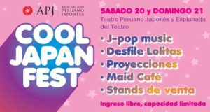Sábado 20 y domingo 21 de octubre Cool Japan Fest J-pop music, proyecciones de cine y anime, desfile Lolitas, Maid Café y stands de productos japoneses serán parte de este festival que mostrará diversas expresiones de la cultura japonesa contemporánea. Hora: >> Sábado 20: De 2:00 p.m. a 8:00 p.m. >> Domingo 21: De 11:00 a.m. a 6:00 p.m. Lugar: ...