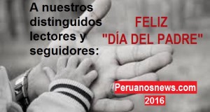 Al celebrarse este tercer domingo de junio el “Día del Padre”, la dirección y los periodistas de Peruanosnews.com se complacen en hacer llegar su cordial saludo a nuestros distinguidos lectores y seguidores que cumplen tan importante rol en la familia, con los mejores deseos que el éxito los acompañe en su vida cotidiana. Este efusivo saludo también va dirigido para aquellas ...