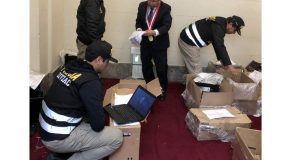 El fiscal supremo, Pablo Sánchez Velarde, dirige allanamiento e incautación a las oficinas del exjuez César Hinostroza como parte de las investigaciones que realiza por el denominado caso “Los Cuellos Blancos del Puerto”. Esta acción tiene por objetivo corroborar y contrastar las informaciones obtenidas por colaboradores eficaces y otras herramientas de investigación con la documentación que se encuentre en esta ...
