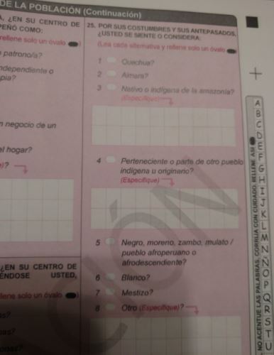 Una de las preguntas que por primera vez se formulará es la número 25, referida a la autoidentificación étnica, es decir cómo se autodefine cada uno según sus costumbres y antepasados familiares.