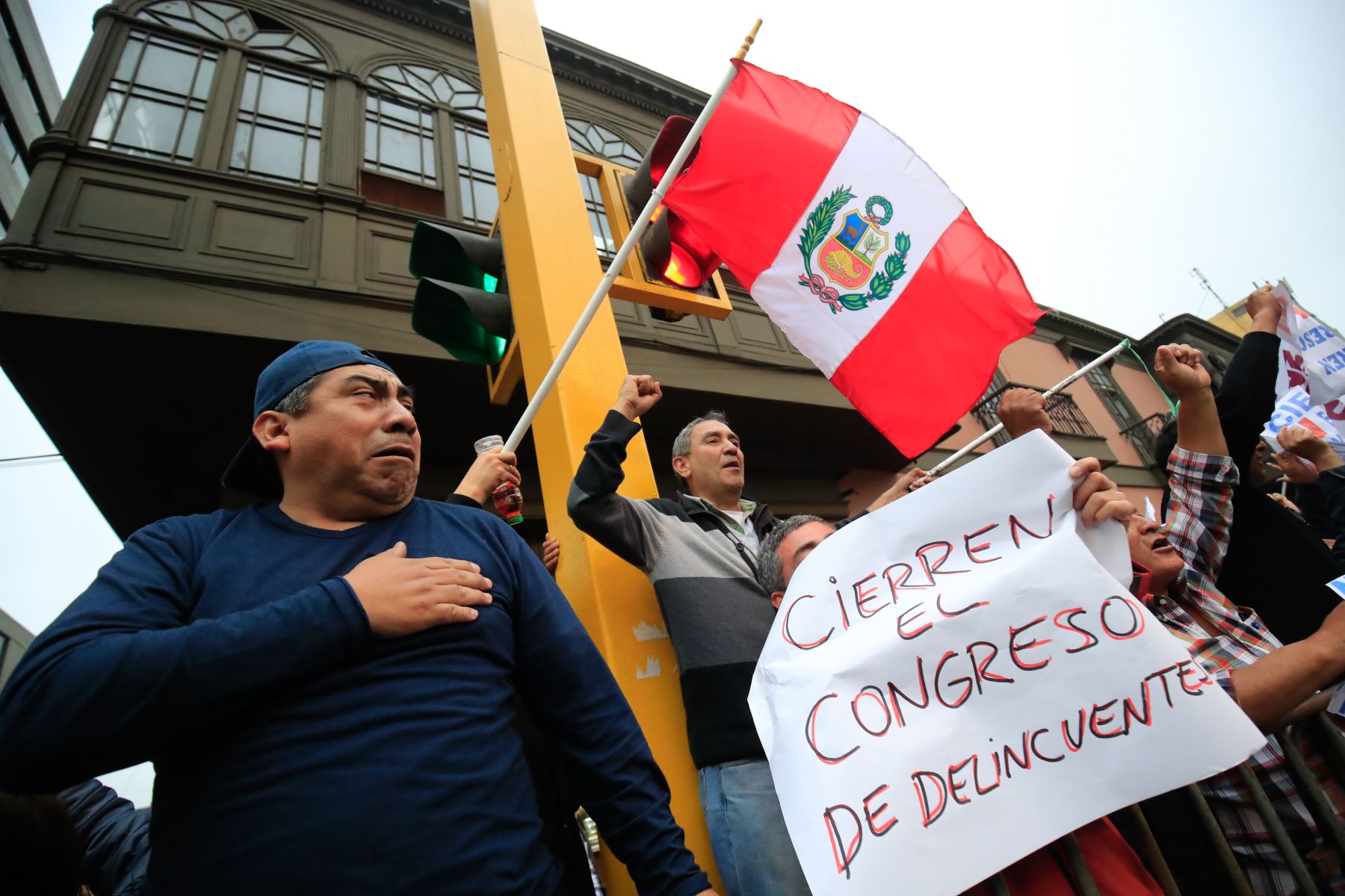 Colectivos ciudadanos se movilizan por el Centro de Lima en respaldo al anuncio del presidente de la República, Martín Vizcarra, de disolver constitucionamente el Congreso y convocar a elecciones parlamentarias.