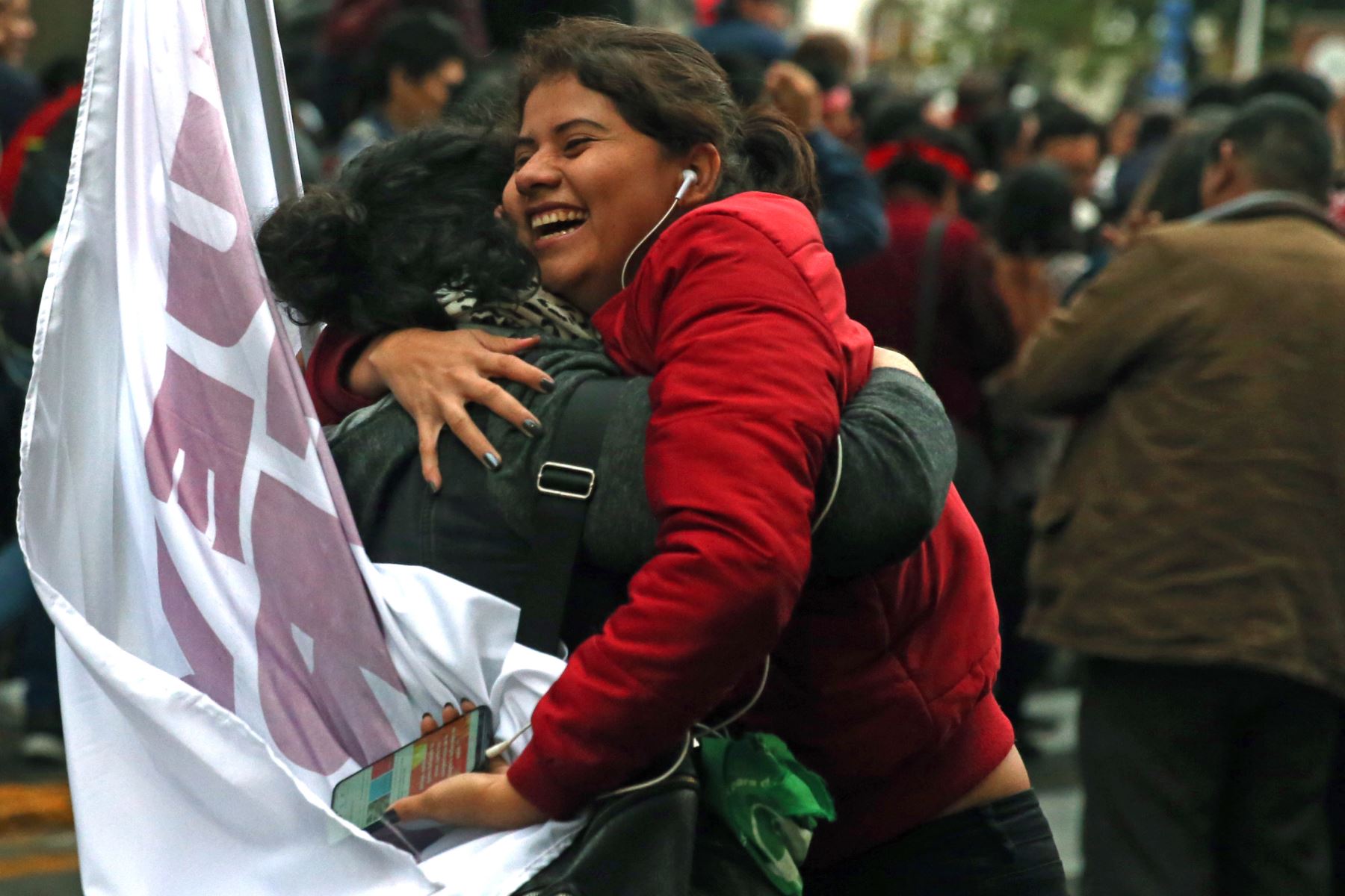 Organizaciones civiles, feministas, estudiantes, sindicatos, partidos políticos se desplazan por la calles de la capital portando banderas y carteles que expresan el apoyo a la decisión del Poder Ejecutivo.