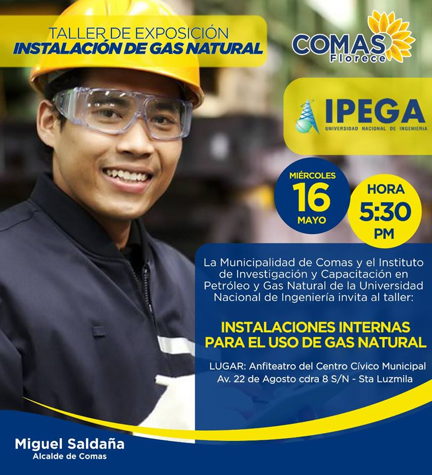 La Municipalidad de Comas y el Instituto de Investigación y Capacitación en Petroleo y Gas Natural de la Universidad Nacional de Ingeniería invita al taller: Instalaciones Internas de Gas Natural.
