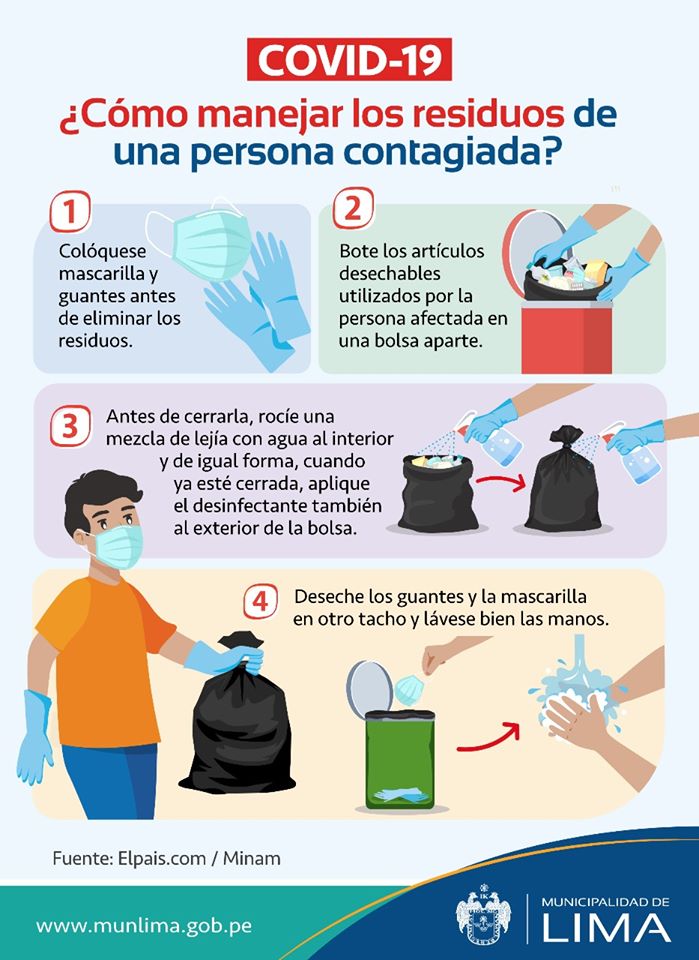 ¡Atención! Si en casa hay una persona contagiada de COVID19, sigue estas recomendaciones para manejar sus residuos. #EnLimaNosCuidamosTodos