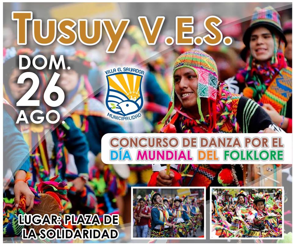 Con el objetivo de promover el intercambio cultural entre los pueblos a través del folclore, la municipalidad de Villa el Salvador a través de la Subgerencia de Educación, Cultura, Deporte y Juventud, está organizando un concurso de danzas a realizarse el domingo 26 de agosto a partir del mediodía en la plaza de la Solidaridad.