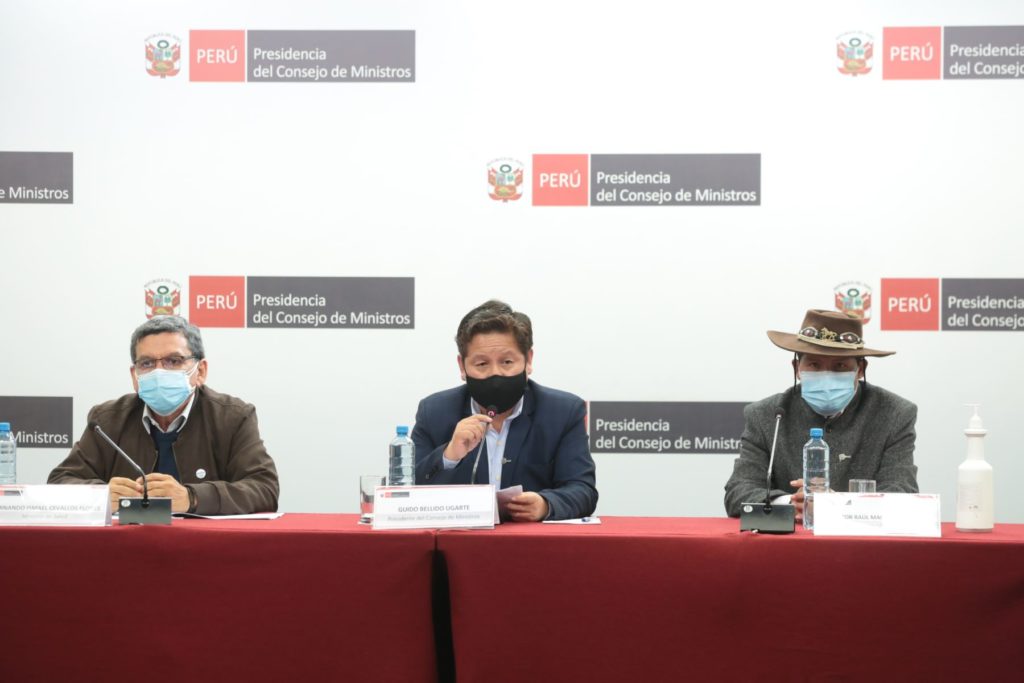 El jefe del Gabinete Ministerial participa en la conferencia de prensa junto a los ministros de Salud, Hernando Cevallos, y de Desarrollo Agrario y Riego, Víctor Maita.