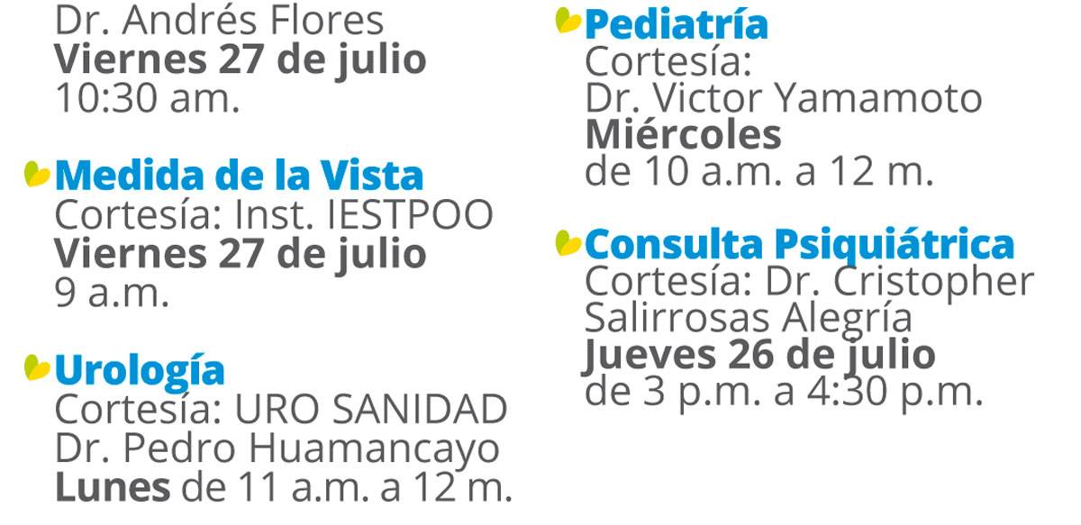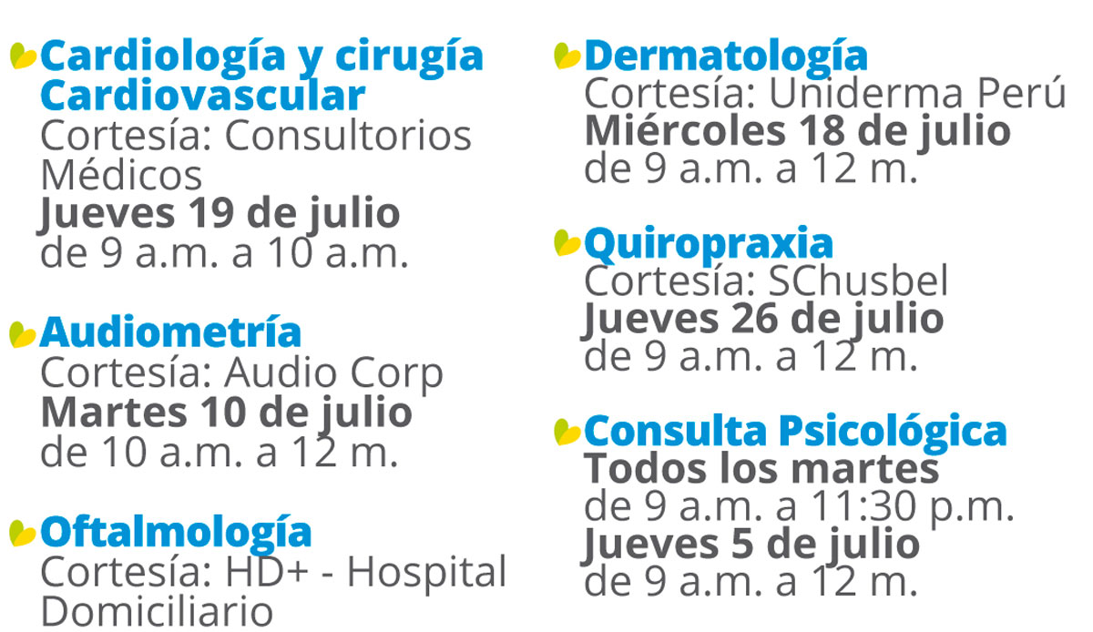 Conoce las especialidades y horarios de atención en el mes de julio: