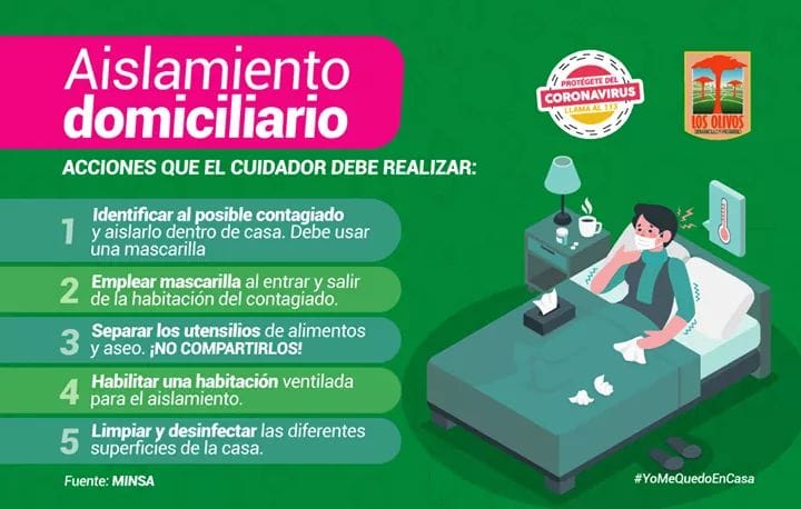 Coronavirus: Aislamiento domiciliario Posted by: Peruanosnews1 Acciones que el cuidador debe realizar Fuente: munilosolivos Coronavirus COVID-19 2020-05-18 Peruanosnews1