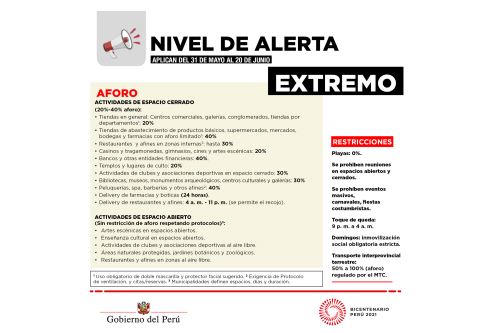 Así lo precisa el Decreto Supremo N° 105-2021-PCM, publicado hoy en la separata de Normas Legales del Diario Oficial El Peruano. La norma prorroga el estado de emergencia nacional por el plazo de 30 días calendario, contados a partir del 1 de junio.