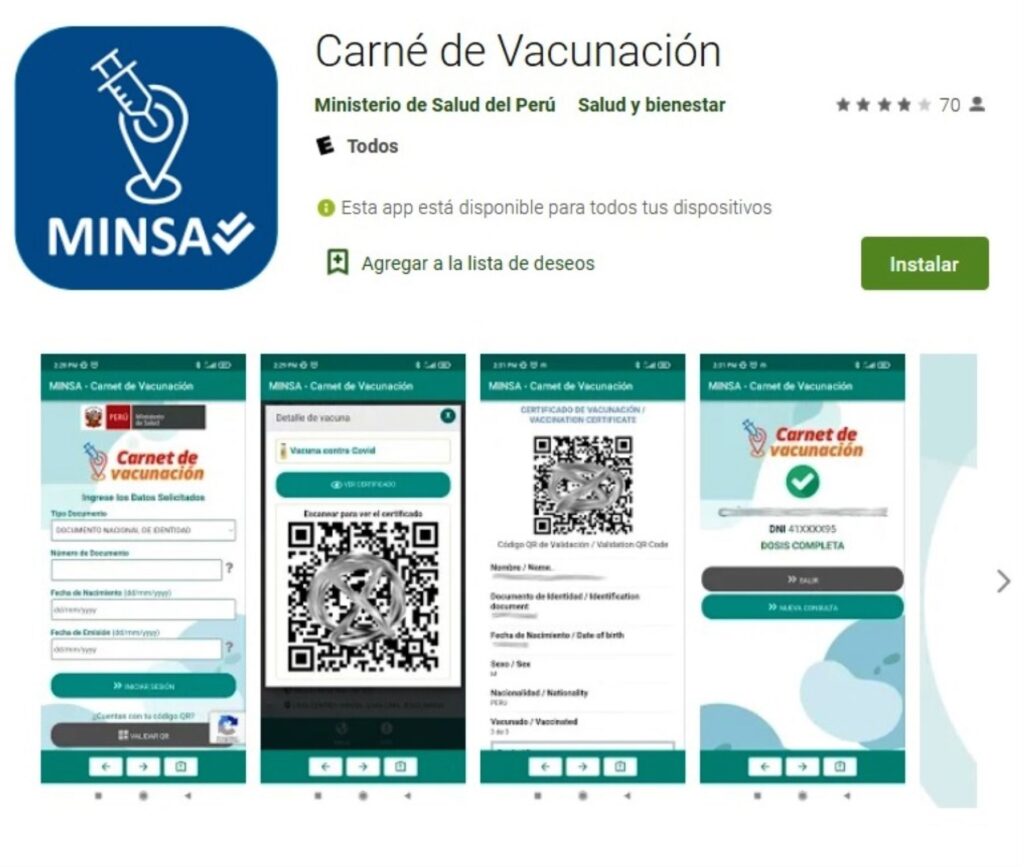 El Ministerio de Salud (Minsa) habilitó desde hoy un aplicativo oficial que permitirá que cualquier usuario del dispositivo Android pueda descargar el carnet de vacunación contra el covid-19 desde el Google Play Store de manera gratuita.