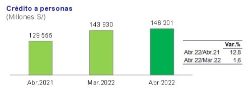 Este avance se vio favorecido por los mayores préstamos a personas en moneda nacional, cuya tasa de expansión interanual pasó de 12.8% en marzo a 14.2% en abril, señaló.