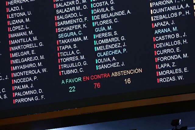 La cuestión de confianza presentada por Zavala Lombardi, tuvo una votación de 76 votos en contra, 22 a favor y 16 abstenciones. La bancada de Fuerza Popular con algunos militantes izquierdistas del Frente Amplio, hicieron la mayoría parlamentaria de su rechazo.