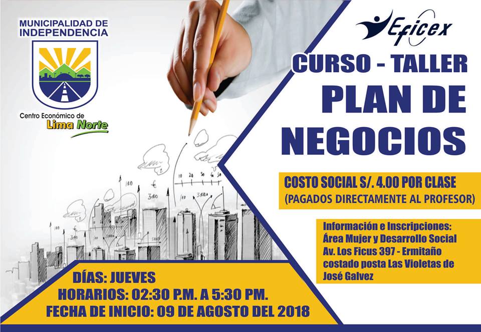 Atención vecinos del distrito, la Municipalidad de Independencia y Eficex presentan el Curso – Taller de Plan de Negocios.
