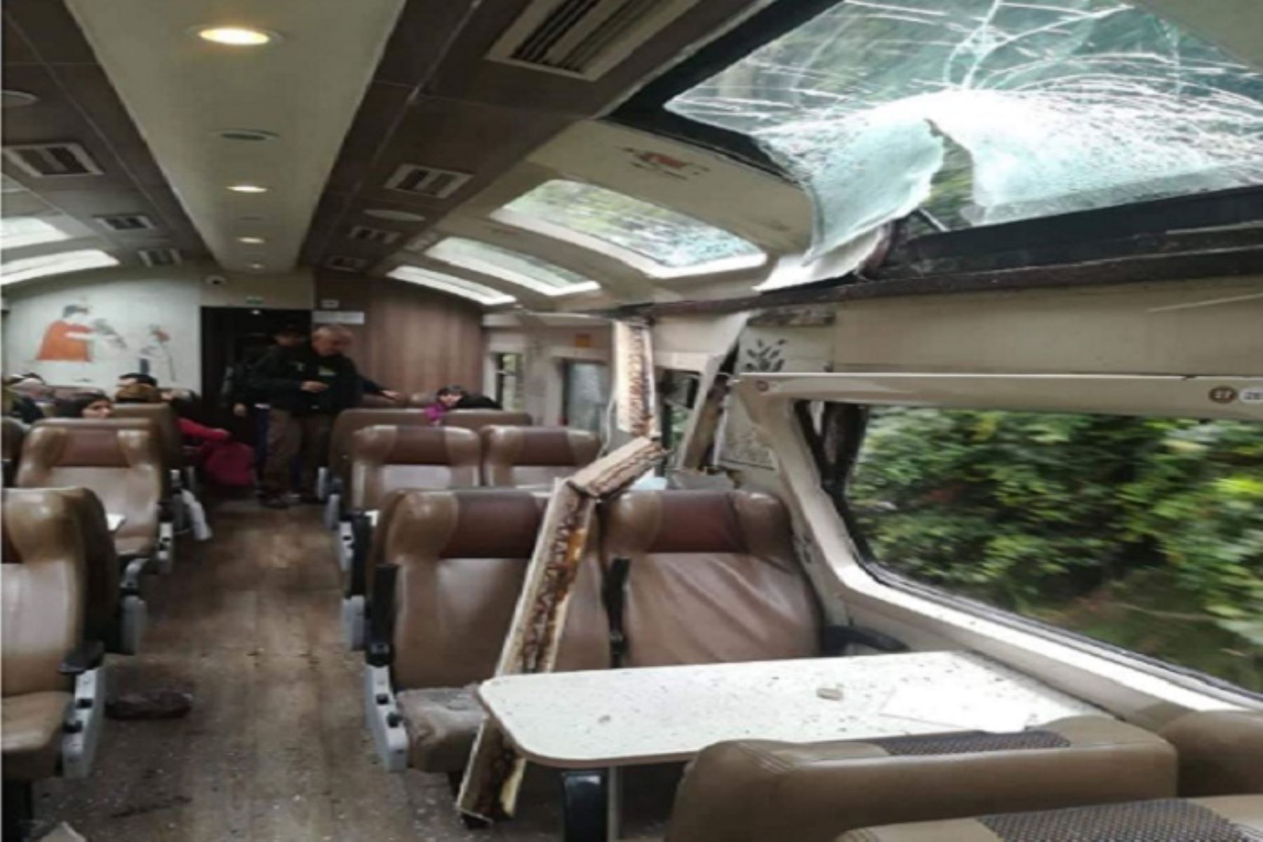Turistas extranjeros que se dirigían a la ciudadela Inca de Machu Picchu, en Urubamba, región Cusco, pasaron un gran susto esta mañana, al caer sorpresivamente una piedra al vagón del tren que ocupaban.