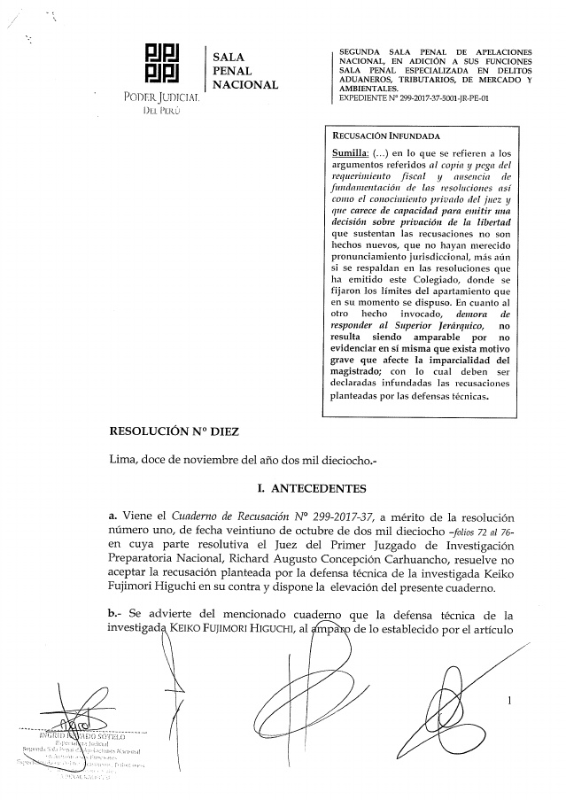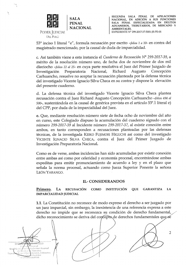 Con ello, Concepción Carhuancho seguirá a cargo de la investigación preparatoria contra Keiko Fujimori y Silva Checa por la presunta comisión del delito de lavado de activos por los aportes recibidos para financiar su campaña presidencial del 2011.