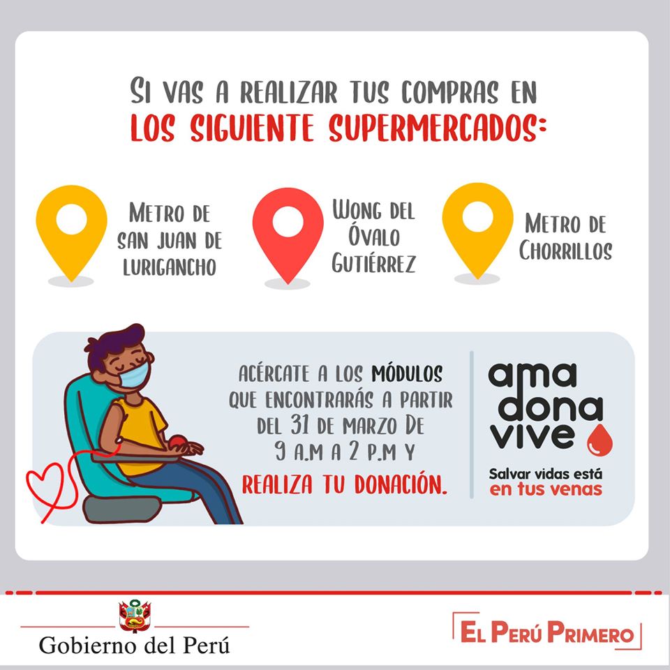 Incluso en cuarentena, tu apoyo es importante. Al salir a hacer tus compras, puedes acercarte a donar sangre a los módulos distribuidos en tres puntos de Lima, de 9:00 a.m. a 2:00 p.m.