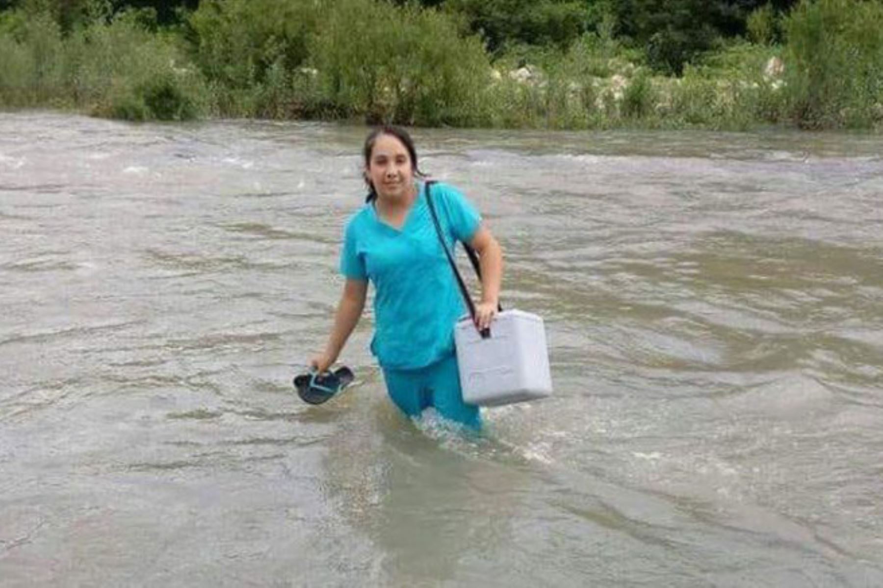 La enfermera Edid Chumacero cruzó un crecido río y caminó por trochas para llegar a la provincia de Morropón, en la sierra de Piura, y salvar a un recién nacido. Foto: INTERNET/Medios