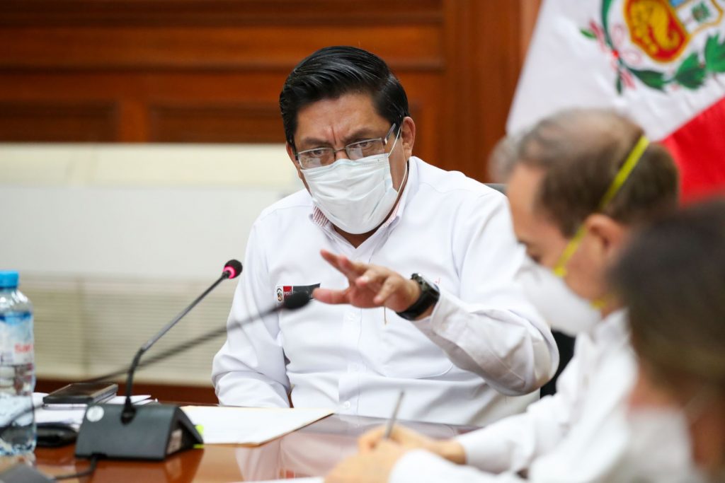 El Poder Ejecutivo publicó una fe de erratas que establece el uso no obligatorio de guantes y mantener el distanciamiento físico por un metro, tal y como lo informó el presidente del Consejo de Ministros, Vicente Zeballos.