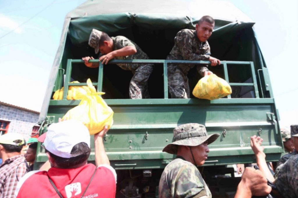 Añadió que los militares subieron por las escaleras hasta lo alto del cerro, llevando esta ayuda puerta por puerta a fin de evitar que las familias salgan de sus casas y respeten el aislamiento social.