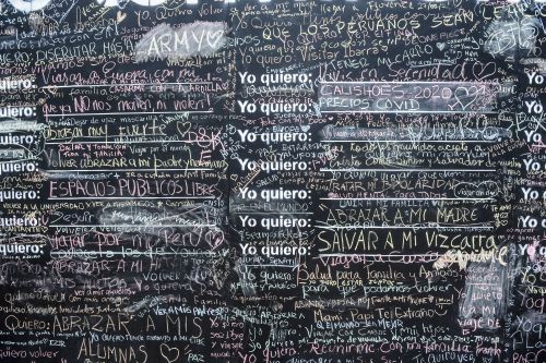 Diversos anhelos, con el común denominador de la enorme incertidumbre del momento que se vive, quedaron plasmados en las pizarras negras colocadas en los parques Central de Miraflores y Grau (del mismo distrito y situado a orillas del mar).