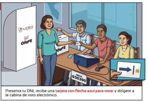 Paso 1. Presenta tu DNI en tu mesa de sufragio, recibe una tarjeta con fecha azul para votar y dirígete a la cabina de votación.