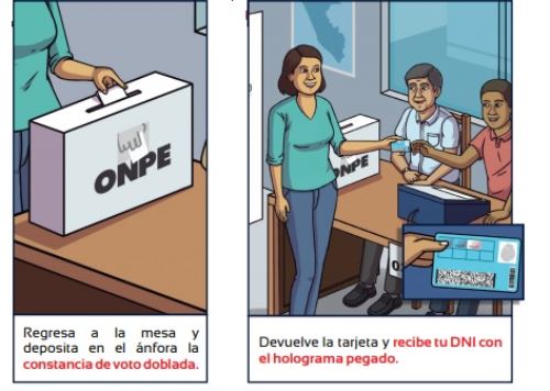 Paso 6. Coloca la constancia del voto en el ánfora, devuelve la tarjeta y recibe tu DNI con el holograma.