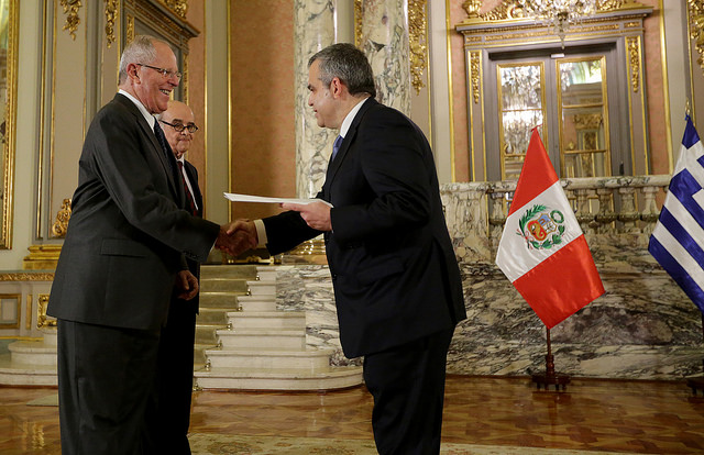 Lima, 04 octubre (PeruanosNews.com).- El presidente de la República, Pedro Pablo Kuczynski, recibió hoy en el Salón Dorado de Palacio de Gobierno, las Cartas Credenciales de los nuevos Embajadores Extraordinarios y Plenipotenciarios en el Perú de Grecia, Uruguay, Suecia y Egipto.